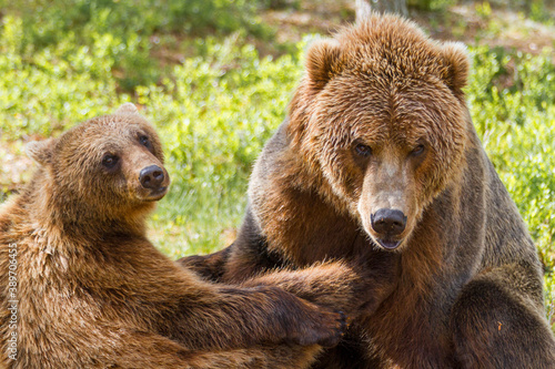 Fototapeta premium Kodiakbär mit Nachwuchs - Ursus arctos middendorffi