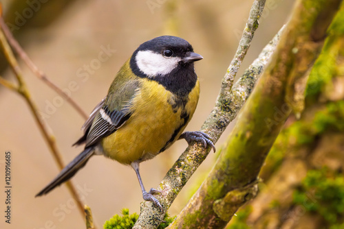 Fototapeta premium Kohlmeise im Winter auf einem Ast / Vogel