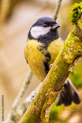 Fototapeta premium Kohlmeise im Winter auf einem Ast / Vogel