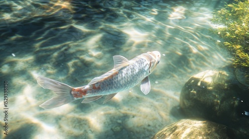 © Mokha, Fototapeta premium Koi fish swimming in clear water
