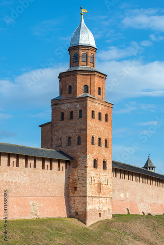 © sikaraha, Fototapeta premium Kokui Tower is close-up on a sunny April afternoon. Detinets of Veliky Novgorod, Russia