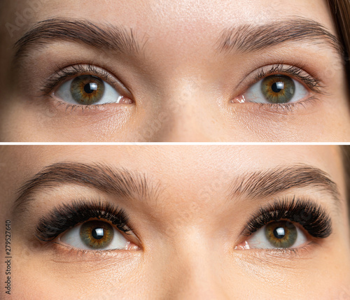 © artem_goncharov, Obraz premium Kolaż porównujący oczy klienta z Lashmakerem