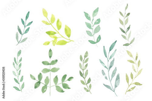 © Akarawut, Naklejka premium kolekcja zestaw ręcznie rysowane akwarela liści na białym tle na białym tle karty i cel projektowy