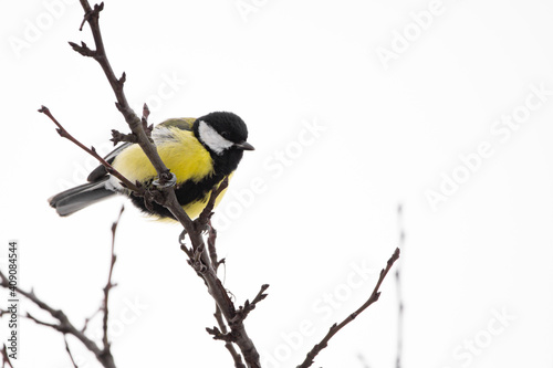 Naklejka premium Kolhlmeise auf einem Ast im Winter