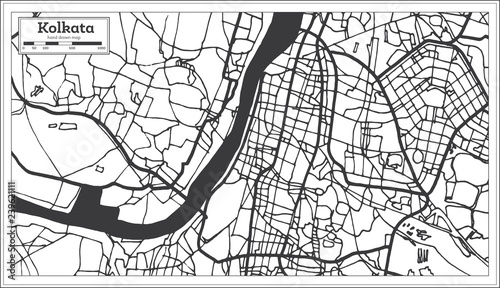 Naklejka premium Kolkata India City Map in Retro Style. Outline Map.
