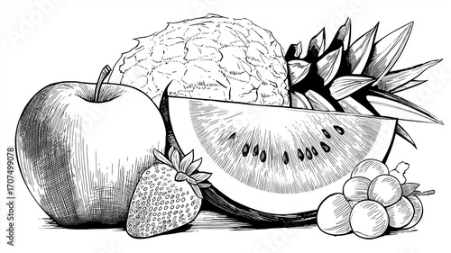 Fototapeta premium Kolorowa rysowanka dla dzieci z różnymi owocami