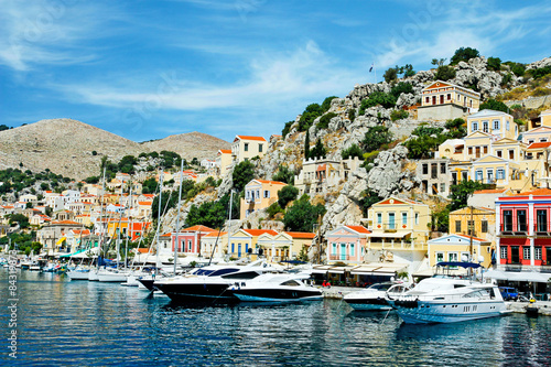 © Alina G, Naklejka premium Kolorowe domy na wyspie Symi, Grecja
