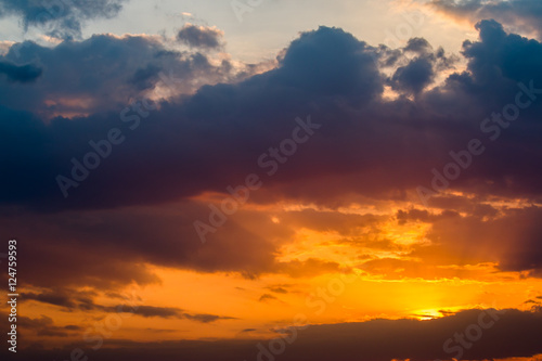 Naklejka premium kolorowe dramatyczne niebo z chmurą o zachodzie słońca