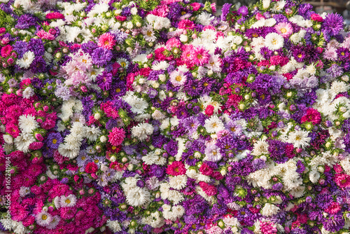 © happystock, Naklejka premium Kolorowe kwiaty w tle do sprzedaży na hurtowym targu kwiatowym w Kyauk Mee