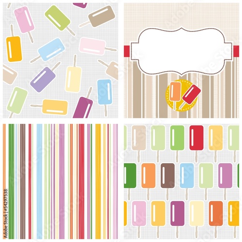 © demonique, Fototapeta premium kolorowe lody na patyku zestaw papierów scrapbook