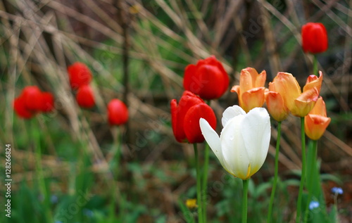 © Katarzyna, Naklejka premium Kolorowe tulipany na łące