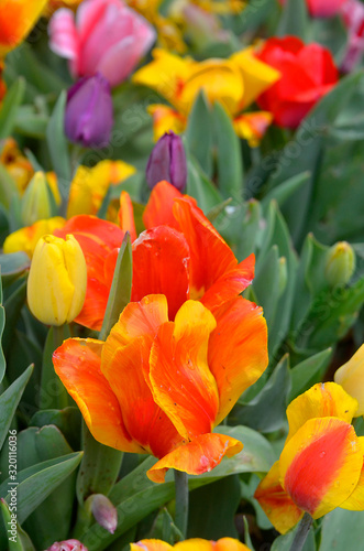 © chris, Fototapeta premium kolorowe tulipany w ogrodzie