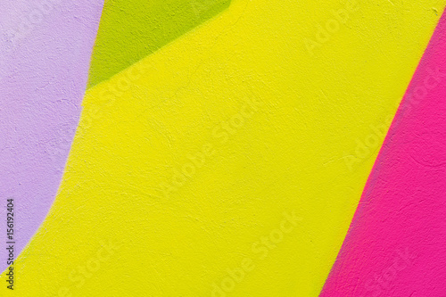Naklejka premium Kolorowy streszczenie teksturowanej tło. Sztuka uliczna, otynkowana fasada ścienna z zielonymi, różowymi, fioletowymi, żółtymi farbami. Kolorowa grungy powierzchnia z miejscem dla odbitkowego teksta