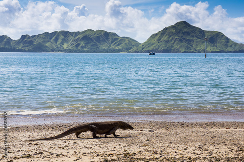 Obraz premium Komodo dragon at the beach, Varanus komodoensis