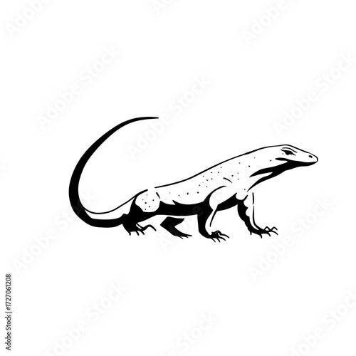 © Aquir, Fototapeta premium Komodo Dragon. Komodo Dragon simple black and white line art vector logo