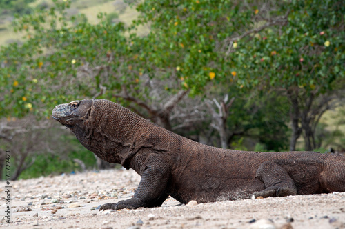 Fototapeta premium Komodo dragon only lives in Flores Island, Indonesia under protected habitat...
