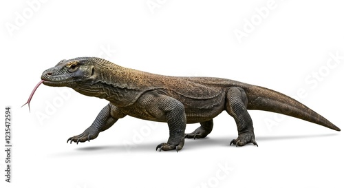 © budi, Obraz premium Komodo Dragon Reptile Walking Isolated on White Background Close Up View