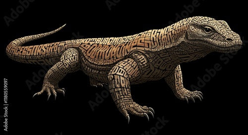 Naklejka premium Komodo Dragon Typography Art Reptile Wildlife Animal Text Design Illustration