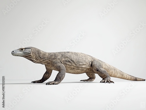 © Rapit, Fototapeta premium Komodo dragon walking, studio shot, white background, wildlife.
