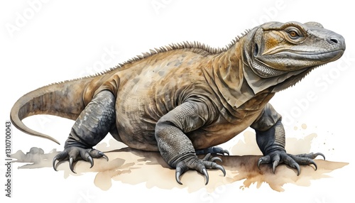 © Panya, Obraz premium Komodo Dragon Watercolor Painting