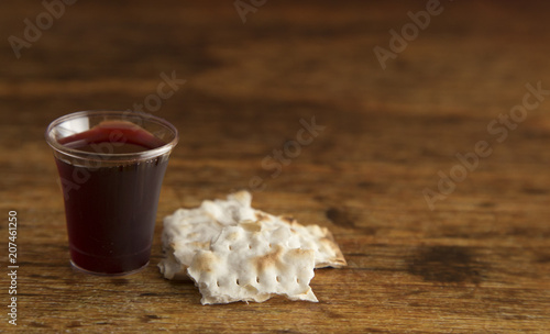 © pamela_d_mcadams, Obraz premium Komunia chrześcijańska na drewnianym stole