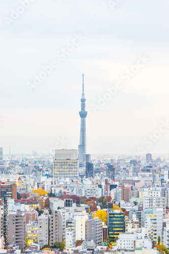 © voyata, Fototapeta premium Koncepcja biznesowa w Azji dla nieruchomości i budownictwa korporacyjnego - panoramiczny widok z lotu ptaka na panoramę miasta Bunkyo pod fantastycznym różowym niebem i chmurą, tokio, Japonia