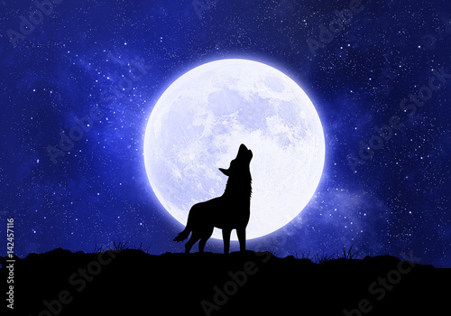 © Black White Mouse, Obraz premium Koncepcja wilka, wilkołaka przed księżycem w nocy