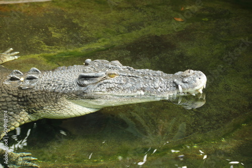 Obraz premium Kopf eines Krokodils von der Seite aus fotografiert