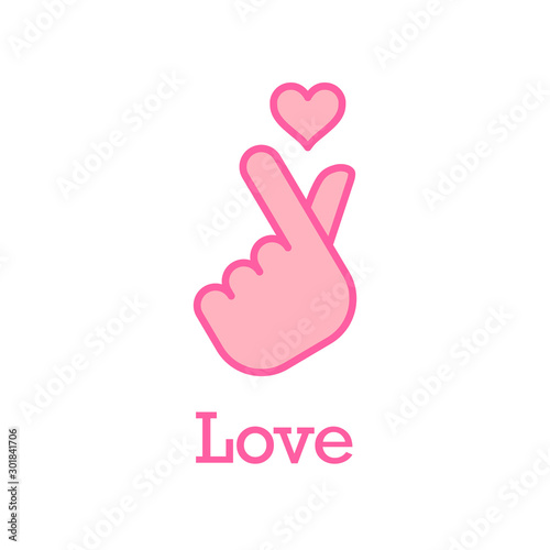 © Matias, Obraz premium Korea finger heart vector illustration. Korean love sign icon.