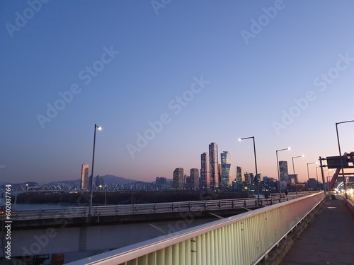 Obraz premium Korea Seoul skyline Skyscraper Buildings City Sky Blue