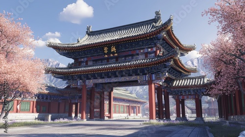 Fototapeta premium Korean and Chinese architectural marvels. Standalone temple, ornate gates....