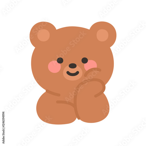 Obraz premium Korean Style Bear Emoji Smiling with One Hand on Cheek Shy Expression