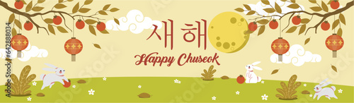 © Budi, Obraz premium Korean thanksgiving and full moon celebration banner design. Happy Chuseok Korea 2023. Autumn banner