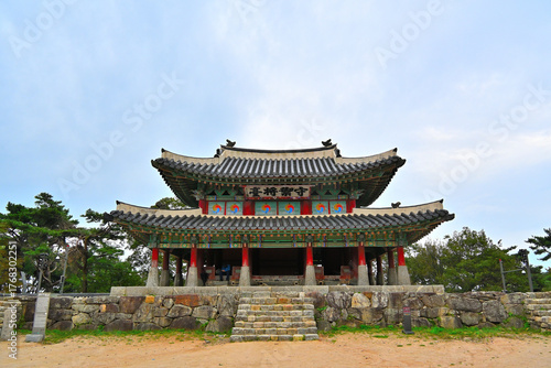 © QyuKim, Obraz premium Korean traditional building with no owner built near the top of the mountain