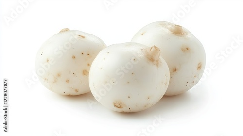 © Elshad Karimov, Fototapeta premium Korean white radish isolated on white background. White radish on a white background with clipping path. Image can be used for menu design, web, print.