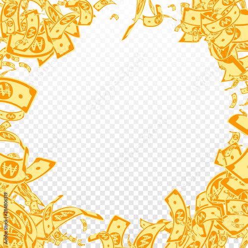 © Begin Again, Obraz premium Korean won notes falling. Messy WON bills on trans