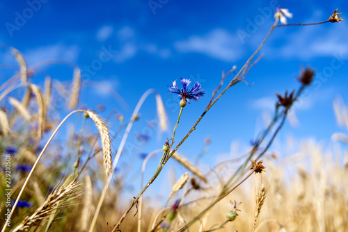 © MajBritt, Fototapeta premium Kornblume vor blauem Himmel
