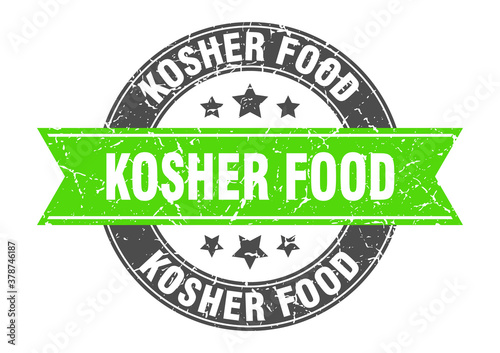 Obraz premium kosher food round stamp with ribbon. label sign