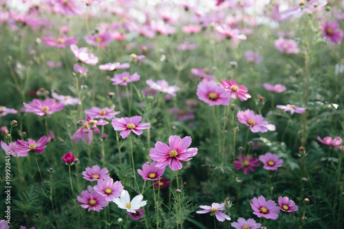 © Oran Tantapakul, Naklejka premium Kosmos kwitnie tło w rocznika stylu