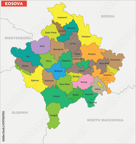 © kadiracar, Fototapeta premium Kosovo Map and cities 3D