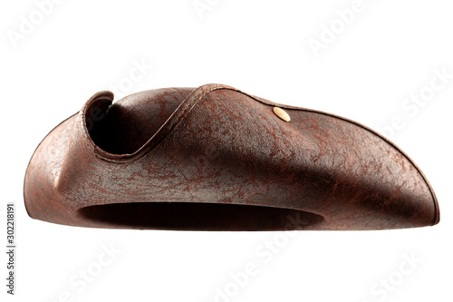© Victor Moussa, Fototapeta premium Kostium na Halloween, przebranie maskarady i kostium pirata vintage koncepcyjny pomysł retro brązowy tricorn kapelusz na białym tle z wycięciem ścieżki przycinającej za pomocą techniki manekin ducha
