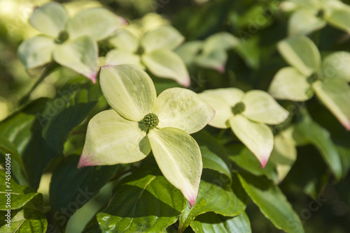 © Olga Begak Art, Obraz premium kousa dogwood tree flowers close-up