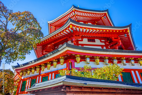 © spozhoga, Fototapeta premium Koyasan.. View of the Manihouto Pagoda at Jofukuin Temple, in Mount Koya (Koyasan), Japan