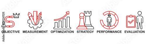 Fototapeta premium KPI banner web icon vector illustration concept for key performance indicator in the business metrics with an icon of objective, measurement, optimization, strategy, performance, and evaluation