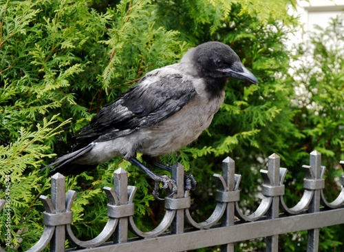 Obraz premium Krähe auf dem Zaun