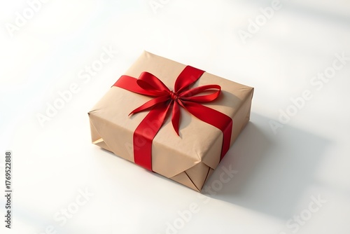 © João Macedo, Obraz premium Kraft paper gift box with red ribbon celebrating holidays