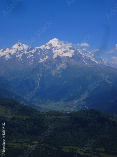 Fototapeta premium Krajobraz górski Swanetii w jasny letni słoneczny dzień. Górskie jezioro,...