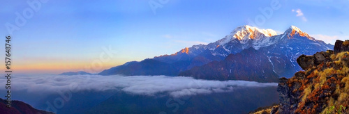 © verock, Obraz premium Krajobraz górski w Himalajach. Ponad chmurami. Szczyt Annapurna South.
