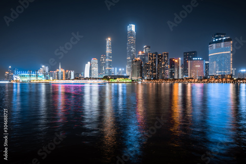 © daizuoxin, Fototapeta premium Krajobraz nocnego miasta Guangzhou w Chinach