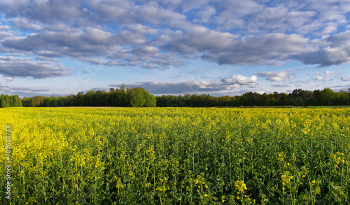 Fototapeta premium Krajobraz rolniczy, uprawy rzepaku w Europie, Polska.